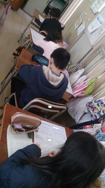 学習の振り返りをしました。□を使った式の課題などプリントで復習しています。