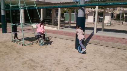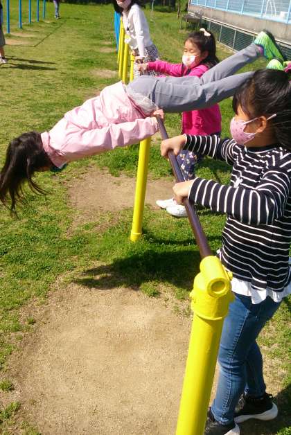 子どもたちは、新しい学年・学級のお友だちと一輪車や鉄棒で休み時間に楽しく遊んでいます。担任の先生と学級遊びをするクラスもあります。