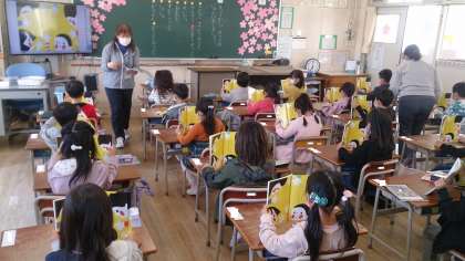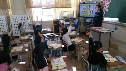 はじめて国語の教科書を使って学習をしました。音読したり発表したり、子どもたちはとても集中して取り組んでいました。