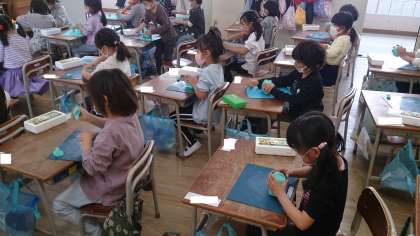 「先生、おだんごづくりで、まるいかたちをつくりました。」など、子どもたちは生活経験を生かして造形活動に楽しく取り組んでいました。