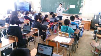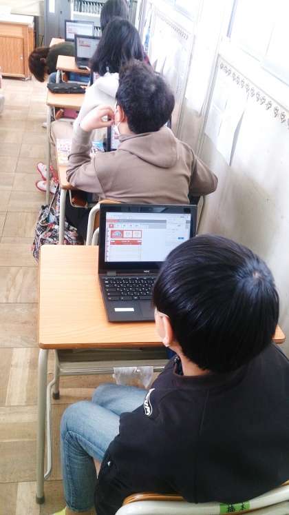 一人一台のPCを使って、「スクールライフノート」というアプリに「心の天気」をタップ操作で記入しています。「心の天気」は、その日の自分の心を可視化するものです。子どもたち自身が自分の記録として振り返ることができます。