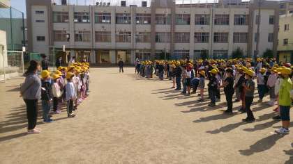 1年生と対面しました。みんなで歓迎の手拍子をしました。