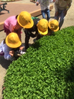 学習園や井高野ガーデンへ春の生き物を探しに出かけました。マーガレット、チューリップ、ダンゴムシ、チョウなど、いろいろな植物や生き物をみつけました。
