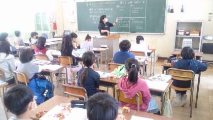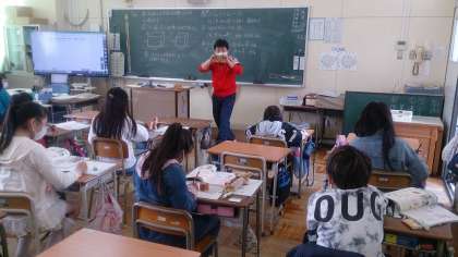 学年を三分割して学んでいます。直方体や立方体の体積を求める公式をつくる学習です。