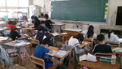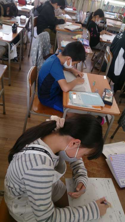 角についての学習もまとめに入りました。プリントで角度の読み取りや作図などに取り組んでいます。