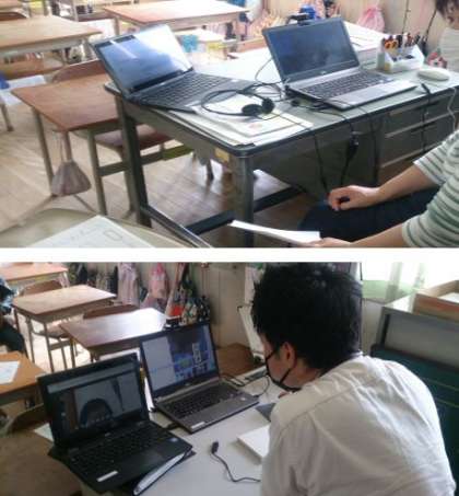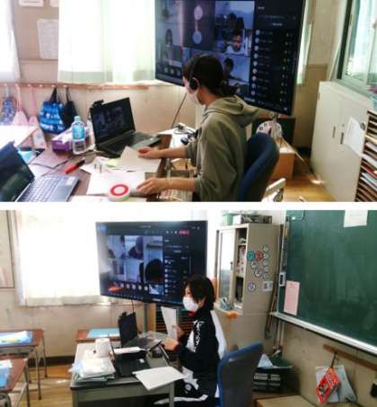 朝の双方向通信へのご協力ありがとうございました。写真は、上が2年生、下が3年生へのリモートの様子です。