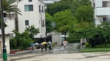 早朝から強い雨が降っていましたが、子どもたちが登校するころになると弱まっていました。元気な挨拶をして登校することができました。