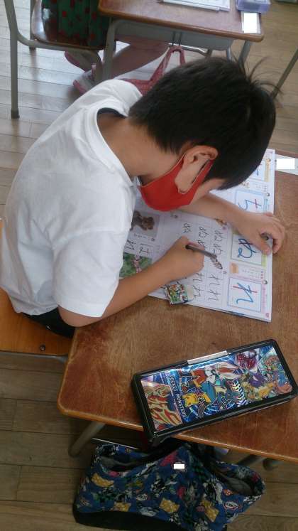 ひらがなの学習をしました。「れ」や「ぬ」の書き方を学んでいます。