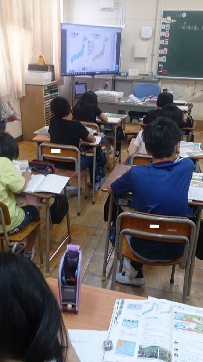 日本の気候について学習しました。7月と1月の降水量から、気候の特色について調べ考えました。