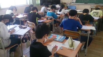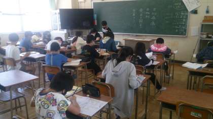 分数のかけ算などの学習をしました。練習問題や学習のふりかえり、まとめをしています。