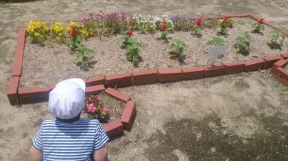 井高野ガーデンで観察活動をしました。写真は学習園を見ている様子です。