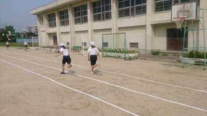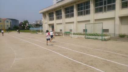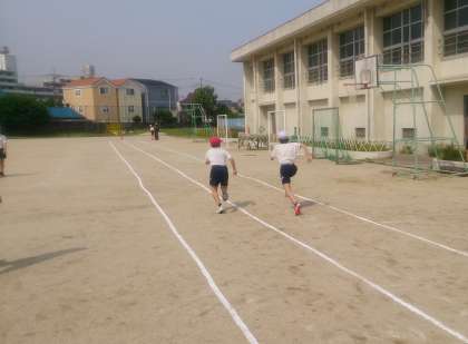 スポーツテストがはじまりました。写真は、50m走に取り組む子どもたちの様子です。