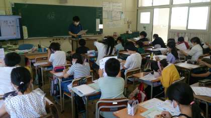 学習のまとめの答えの確かめをしました。一問一問を丁寧に振り返っています。