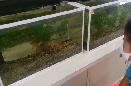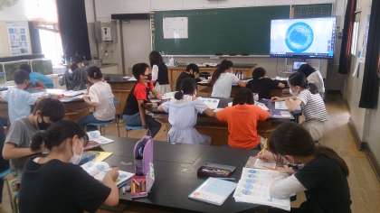メダカの卵がどのように育っていくか学習しました。実際のメダカの卵や映像を見ながら記録しています。