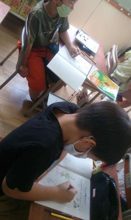 植物の「葉」「根」「茎」などのつくりについて学習しました。さつまいも、玉ねぎなどの植物の種類の違いよる体のつくりも学んでいます。子どもたちは、しっかりとノートに学習のまとめを書いています。