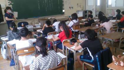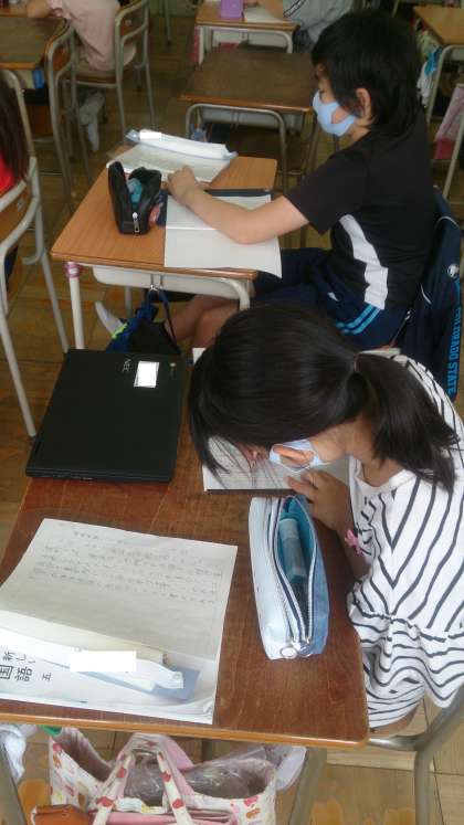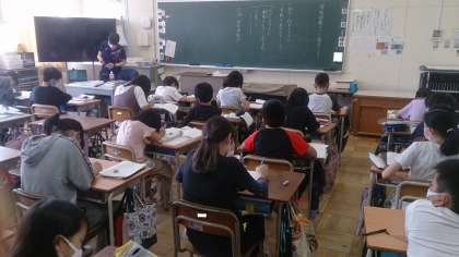 「環境問題について報告しよう」の学習をしました。各班の発表を聞いて、よかった点について話し合っています。