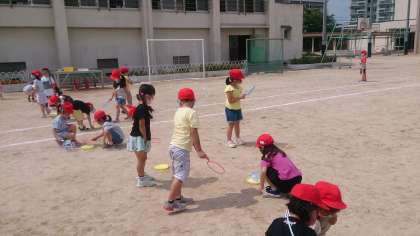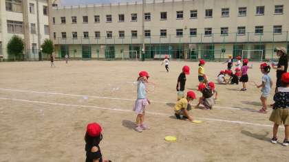 しゃぼん玉遊びをしました。大小のしゃぼん玉をつくったり、風の乗って遠くへ飛ばしたりと工夫しながら楽しんでいます。