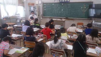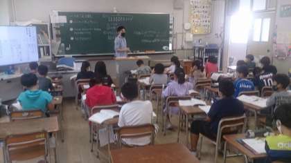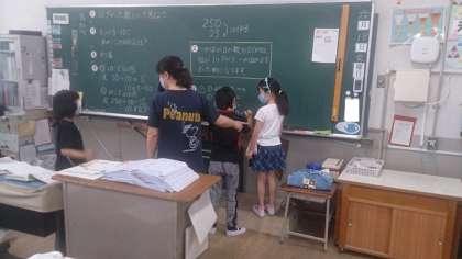 「10でわった数」について学習しました。文章問題から立式し、計算の仕方を考え課題を解決しています。