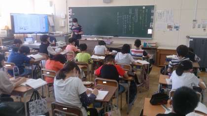 物語文「世界で一番やかましい音」の学習をしました。物語のの山場に向かってどんな出来事が起こったのかを話し合っています。