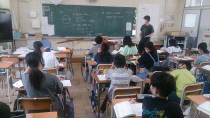 これまでの学習の復習をしました。人口密度や円周など、立式して課題を解決しています。