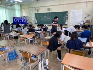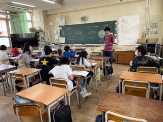 円の面積の公式を使って、おうぎ形の面積の求める学習をしました。友だちと意見交流しながら学習できました。