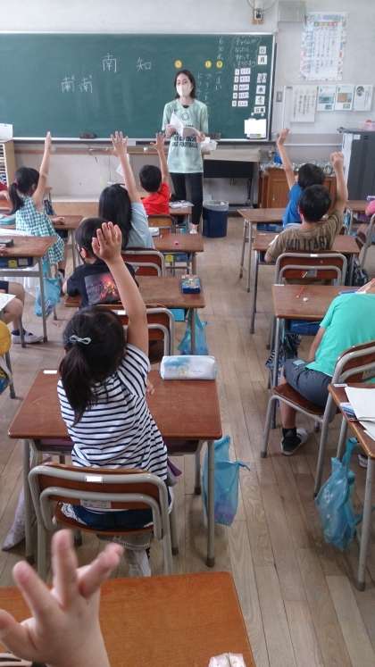 物語文「名前を見てちょうだい」の学習しました。先生の範読をしっかりと聞いています。発表も活発です。