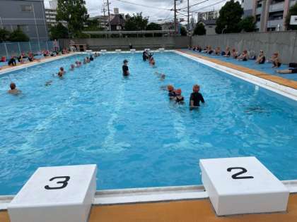 2時間目に2年生がプールに入りました。水慣れをしたり、いろいろな潜り方や浮き方に挑戦してました。楽しそうな声がきけました。