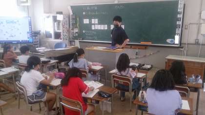 たし算の学習をしました。くり上がり、くり下がりのあるたし算をあん算でしています。計算のきまりを使って計算を工夫しています。