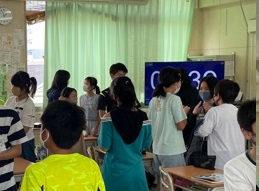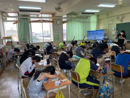 6年生の外国語の学習をしました。目を伏せて手をあげて、後で英語で友達に挙げたかどうかを聞いてだれがあげたかあてる活動をしました。みんな活発に英語で質問したり、答えたりしていました。