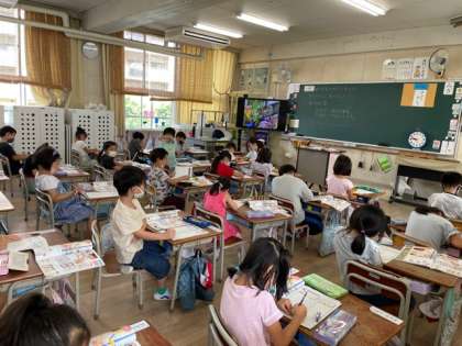 生活科で「あさがおのかんさつ」をしました。プリントにアサガオの成長の様子を書きました。