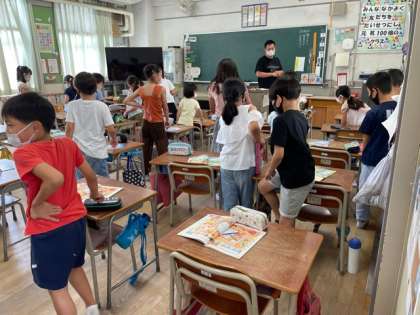 3年生は、外国語活動をしました。先生が、英語でいった色を素早くタッチするゲームをしました。楽しそうに学習できていました。
