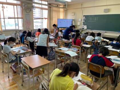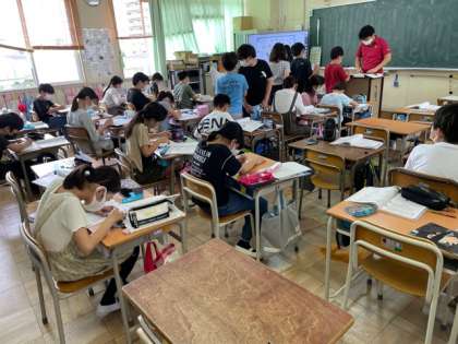 5年生は、算数科でたしかめの学習をしました。友だち同士で教えあっている様子も見られました。