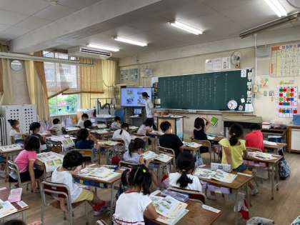 1年生は、道徳の学習で「ぞうさんとおともだち」の学習をしました。自分ことだけではなく友だちのことも考え互いに嬉しくなることに気付き、友だちと仲良くし助け合っていこうとする心情を育てるために学習しました。
