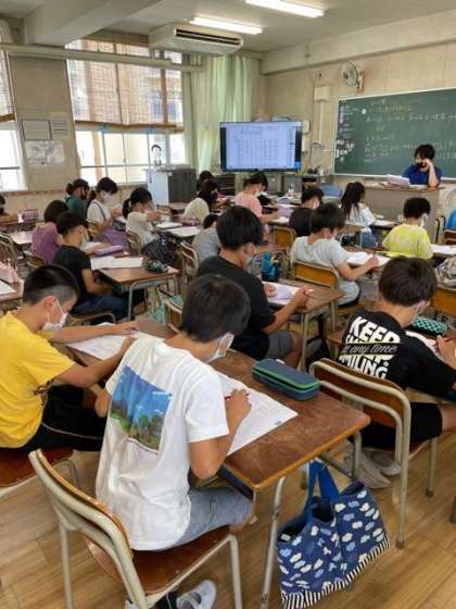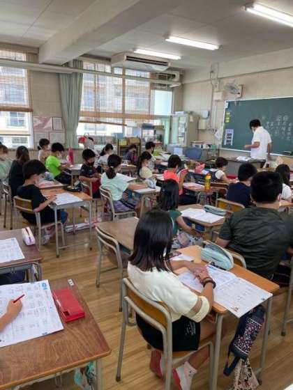 4年生は、夏休みの宿題の丸付けをしました。