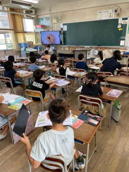 1年生も夏休みの宿題の丸付けをしていました。
