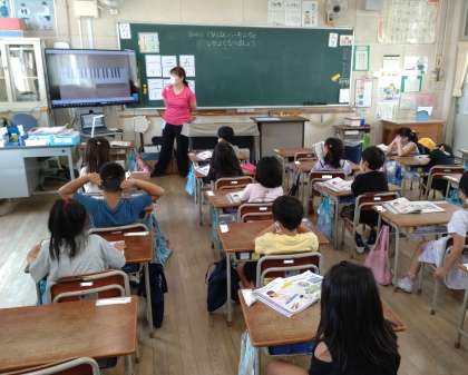 音楽で鍵盤ハーモニカの学習をしました。動画を見て、楽器の扱い方やなおし方などを学んでいます。