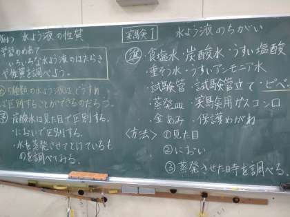 水溶液の性質について学習しました。いろいろな水溶液のはたらきや性質を調べています。