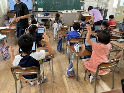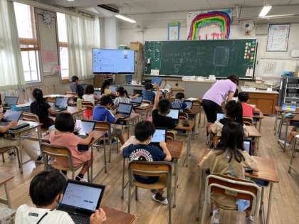 2年生は、実際にデジタルドリルをしました。算数のたし算の問題をしました。まだ、操作になれないので先生に教えてもらいながら学習しました。操作になれると一人でどんどん学習できるようになります。
