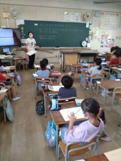 感謝のお手紙を書きました。朝の登校時に見守りや読み聞かせボランティアなどをしていただいている方々に感謝のお手紙を書いています。