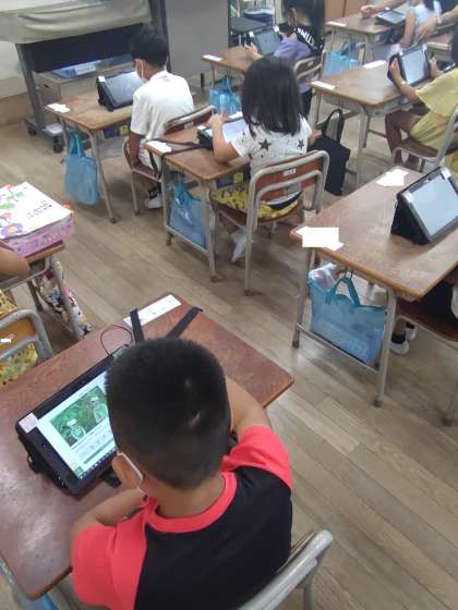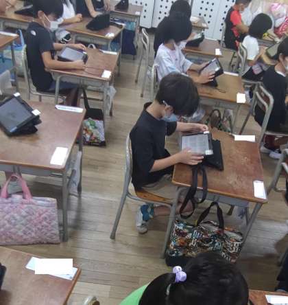 タブレットを活用して学習しました。操作にも慣れて、昆虫の動画などを熱心に見て学んでいます。