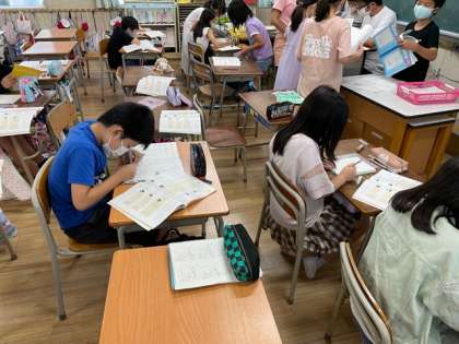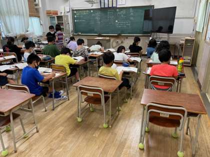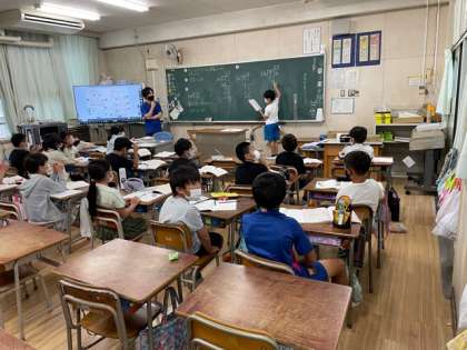 4年生は、算数で答えが2ケタになるわり算の筆算の仕方を学習しました。できた子が友だちに教える様子も見られました。