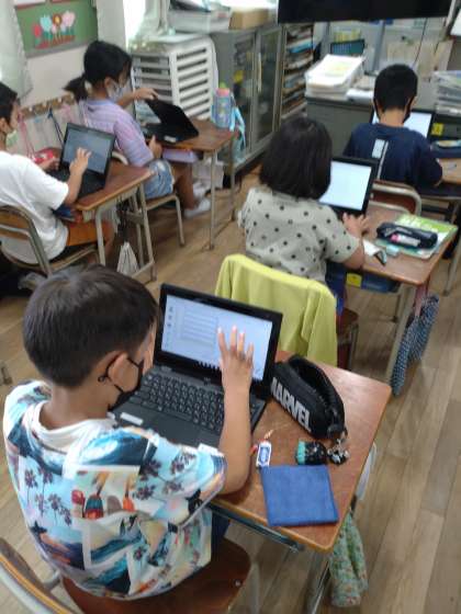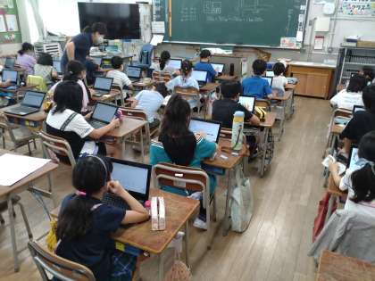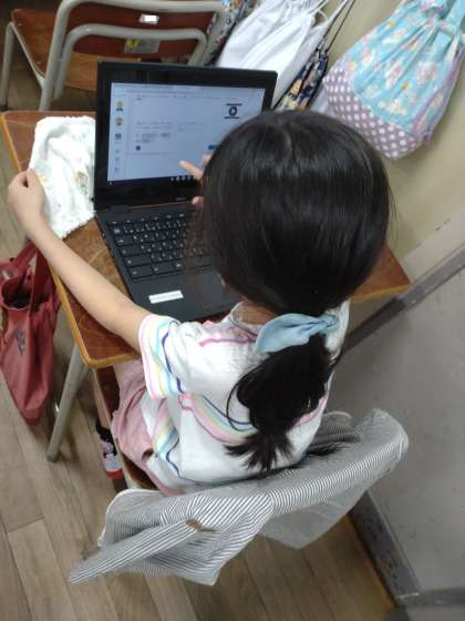 一人一台端末を使って、デジタルドリルに取り組みました。「navima」というデジタル教材プラットフォームで、子どもたちが自分に合った学びを見つけ、自分のペースで学びを進めることができます。算数・国語(読解・漢字)・理科・社会・英語の5教科で学べます。