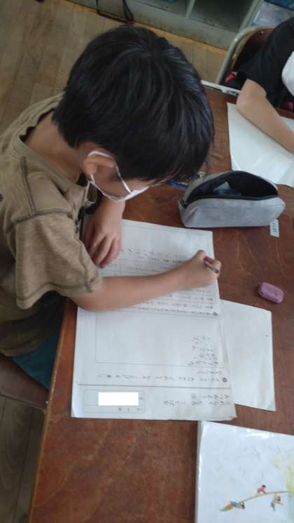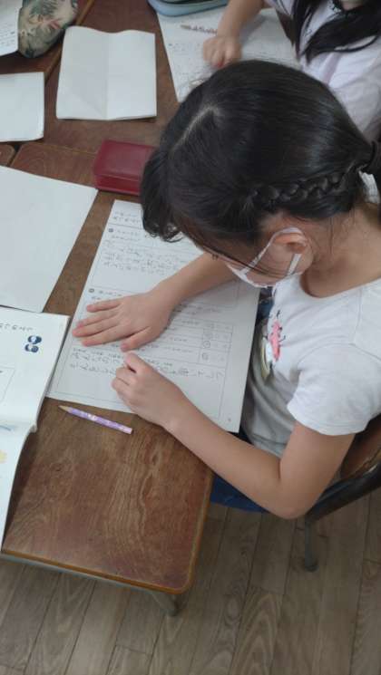 教材「うれしくなることばをあつめよう」の学習をしました。周りの人に言葉をかけられてうれしくなった経験を振り返り、話し合って気づいたことをワークシートに書いています。