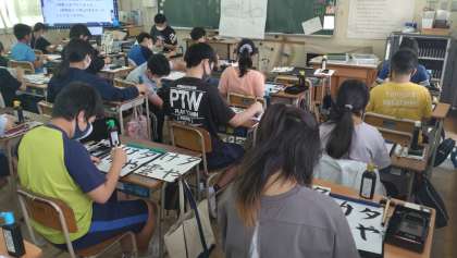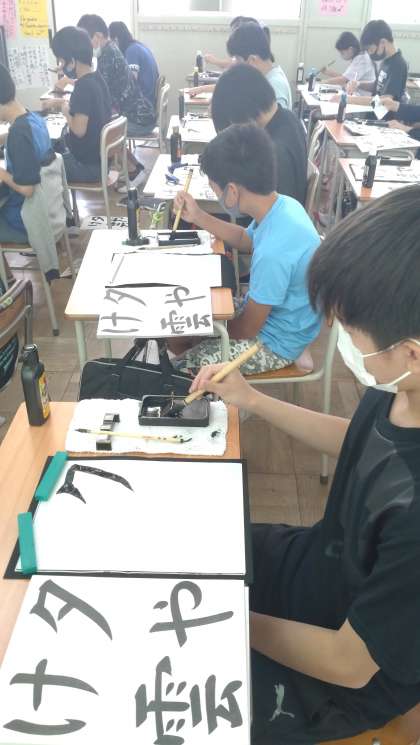 書写の学習に取り組みました。漢字と平仮名の大きさや,配列を考えて書いています。