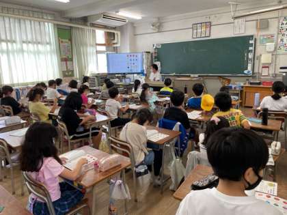 3年生は、外国語で「I like 〜」(わたしは、〜がすきです。)の学習をしました。色以外にスポーツなど様々場面でつかえることを学習しました。