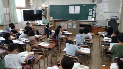 物語文「ニャーゴ」の学習をしました。全文を読んで、感想を書いています。感想には、不思議に思ったことや心に残った言葉などを書きます。
