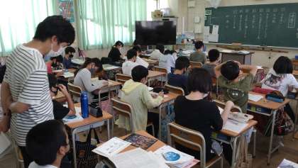 物語文「海のいのち」の学習をしました。時・人・場を考えながら、場面分けをしています。