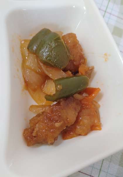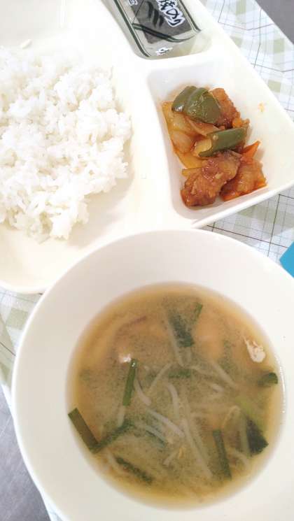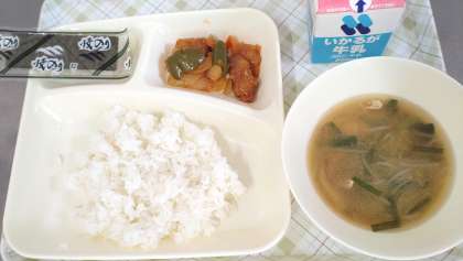 今日の給食は、酢豚、中華みそスープ、焼きのり、ごはん、牛乳です。