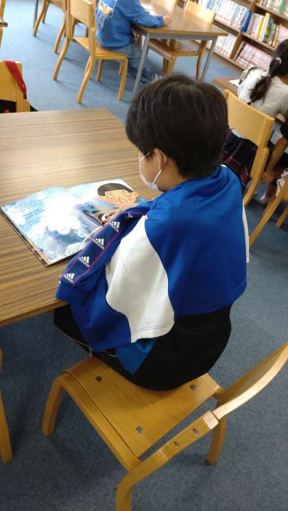 読書活動をしました。静かに集中していろいろな種類の本の読書に取り組んでいます。児童朝会での講話に登場した「ヘレン・ケラー」の自伝を見せにきてくれる児童もいました。