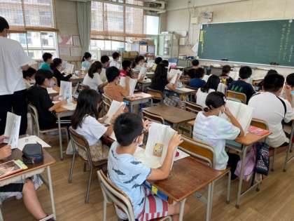 国語の教科書を全員で音読しました。声をそろえて上手に読むことができています。